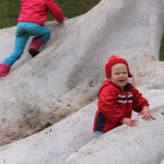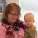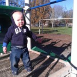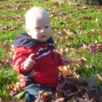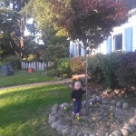 When we arrived in Corvallis, Josef was barely crawling at all.  Over the second half of June he refined his technique, and by the height of summer he was cruising all over the backyard.  Later he developed a method to get around while holding something in his hands–sort of a half-crawl with one knee and one foot.  At the end of August he figured out how to balance standing up by himself.  His desire to be able to throw things into the kiddie pool necessitated this innovation.  During September he honed his toddling skills by hanging on to the edge of a couch or coffee table, and in October he took his first steps.  I would call it more of a controlled slow motion fall forward, with legs moving.  One of the first times it happened was during a Skype session with Oma and Opa, which was really special.  Come Halloween time, he was able to show off his skills for Gramnette too, as she came for a visit before her move to Portugal.  By November he was a seasoned toddler!