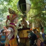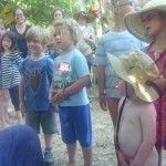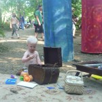 Josef and I went to the Oregon Country Fair together in July and had a fantastic time! He is always such a jolly and amicable companion on our special outings–always game for anything and good-spirited in all circumstances. He really enjoyed all the interesting sights and sounds. I was pleased and impressed with how kid-friendly the whole place was; I certainly don’t remember it being that way when I was 15! (But then again, why would I have even noticed back then..?) There were several good puppet shows we took in, and lots of live music to enjoy. We danced in the drum tower and ate a variety of treats and even made a few friends. Everyone seemed quite delighted with seeing little Josef wandering around, and I must have heard the joyful cry of “Naked Baby!” about 50 times.