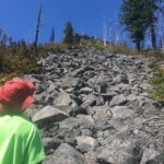 The next day we tried to climb up to Marion Peak, but that was sadly a bit of a disaster. Josef wilts in the heat pretty fast, plus he had a very painful canker sore which ruined his mood, so it ended up being a pretty awful experience for both of us. I always struggle to know the right balance between expanding beyond limitations versus accepting them. I’m not sure I got it right this time, but sometimes when you’re all alone out in the wilderness you don’t get much choice, which of course is one of the benefits of wilderness! I am noticing that Josef seems fairly uninterested with a long hike on single track through the woods, but will eagerly bushwhack along a creek bed or up a rocky mountainside. Perhaps I need to adapt these backpacking trips to go on much shorter, but more exciting, scrambles…