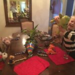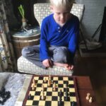 Below you will find some photos from some of the happier moments: Josef learned to play chess, and we frequently squared off on rainy days. Josef threw birthday party for Freddy, his best friend teddy who is always at his side. We had our traditional Opa birthday feast – German rouladen prepared by Gramheart. Josef started practicing his writing skills by corresponding with other classmates during the quarantine. Josef also began planning an elaborate circus act to put on outside Grammie’s window.